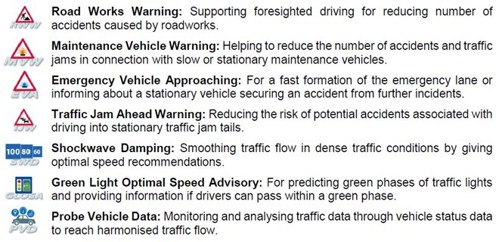 "Cooperative intelligent transport systems realise the vision of safe and intelligent mobility of the future", says Prof. Gerd Riegelhuth, President of Hessen Mobil. He continued: "The direct exchange of data and information between vehicles and the road infrastructure will significantly increase road safety by means of early hazard warnings in the vehicle. A targeted harmonisation of traffic flow helps to avoid traffic jams and reduce emissions".