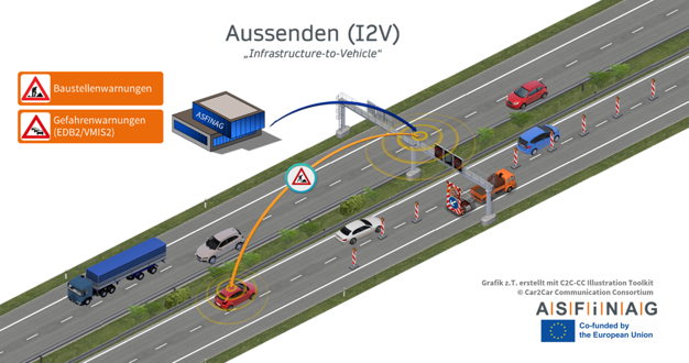 Sending signals from ASFINAG´s traffic control center to vehicles via C-ITS roadside untits approaching danger zones